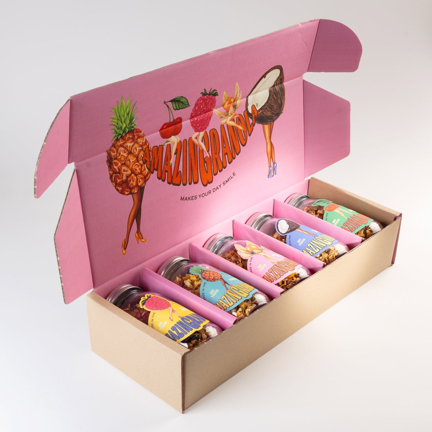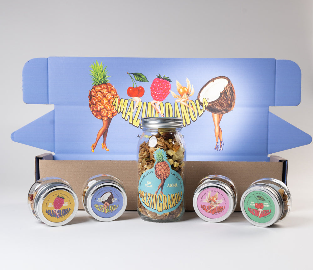 Egal, ob du für dein geliebtes Granola Nuss- und Schoko-Stücke pur geniessen möchtest, du dein Granola zuckerfrei, aber mit der natürliche Süsse exotischer Tropenfrüchte liebst oder eine knusprige Mischung aus Nüssen und edlen Superfoods bevorzugst: Jede Sorte von amazinGranola liefert dir stets wertvolle Proteine, gesunde Fette und vor allem langanhaltende Energie, die dich den ganzen Tag über versorgt.