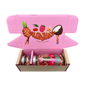 Das röstfrische amazinGranola wird dir mit der schweizerischen B- Post zugesendet.